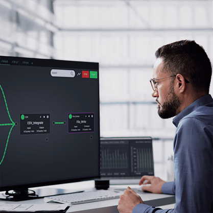 DX100 includes a flow editor where you create data processes by connecting building blocks—an approach that’s more approachable than starting from scratch in code.
